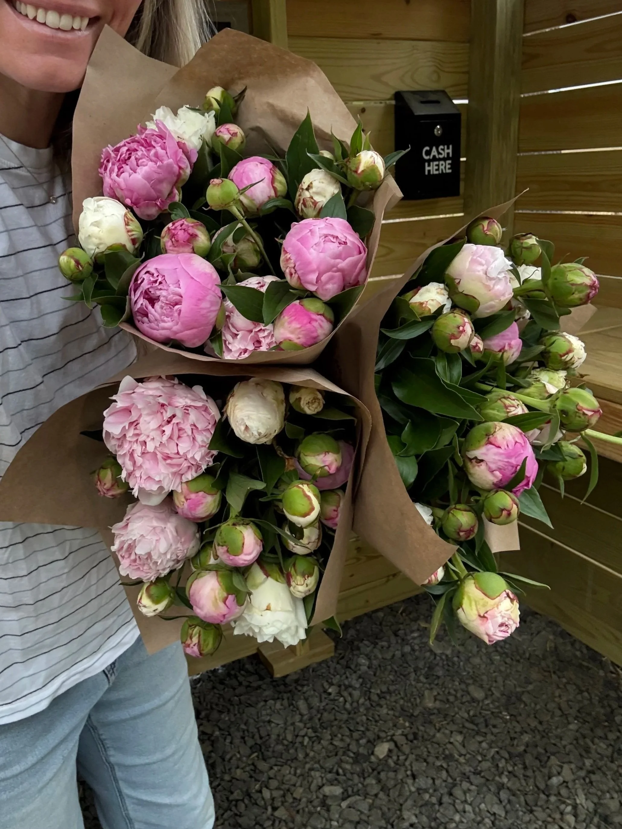 Peony season arrives in late April and lasts only a few short weeks. During bloom the roadside stand is stocked each morning with freshly cut peony bouquets. Because the season is brief, flowers often sell out quickly. Follow along on Instagram for daily updates when the first blooms arrive.
